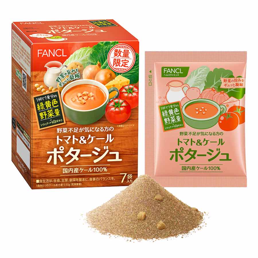 - 野菜パウダー[トマト(ポルトガル産)、ケール粉末(ケール(国内産)、でんぷん分解物)、じゃがいも、たまねぎ(小麦を含む)]、でんぷん、クリーミングパウダー(コーンシロップ、植物油脂、カゼイン)、砂糖、でんぷん分解物、食塩、調整豆乳パウダー(大豆を含む)、植物油脂、酵母エキスパウダー、チーズパウダー、チキンシーズニングパウダー(鶏肉を含む)、野菜エキスパウダー、香辛料、うきみ(クルトン) /クエン酸、トマト色素、ビタミンC