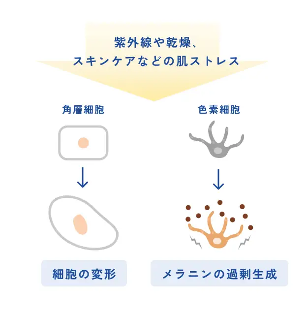 防腐剤や香料などの添加物によってストレスを受けた肌よりも、ストレスのないすこやかな肌のほうが、スキンケアの機能が効率よく発揮されるという研究結果が出ています。