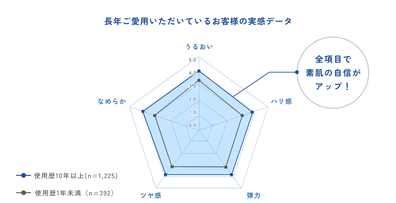 肌のきれいさに関する6項目の自己評価(5点満点)平均スコア