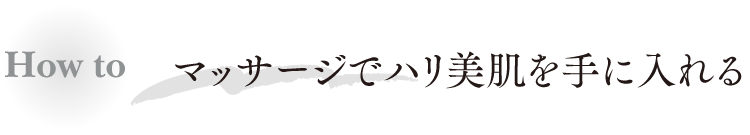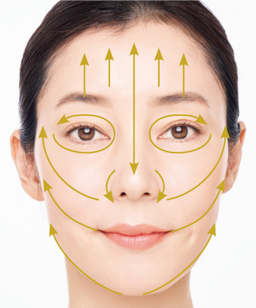 ハリのなさが気になるならば、クリームを『引き上げ塗り』してみて。適量を手にとり、中指と薬指の腹を使って、「顔の内側から外側へ」、さらに「下から上方向に」を意識しながらていねいになじませます。