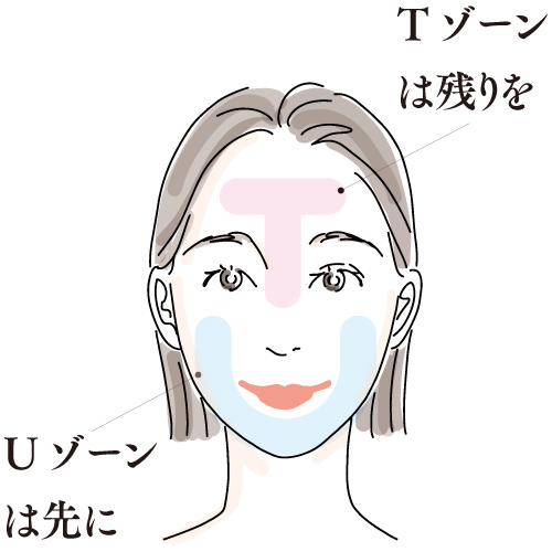 うるおうのにサラサラに仕上がるクリームを選んで。最初に乾きやすいUゾーンに、残りをTゾーンに塗布。