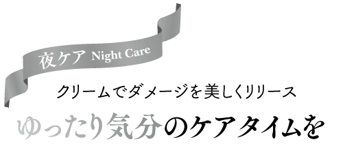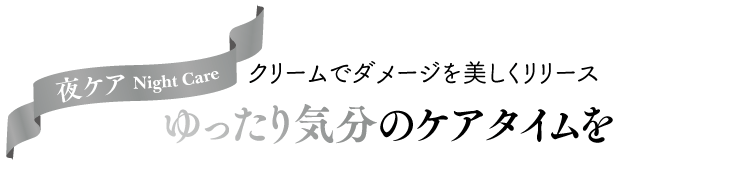 日中の環境で外的刺激を受けた肌を、夜のクリームケアでいたわりましょう。じっくりとマッサージしながらなじませれば、凜としたハリやあでやかな輝きが。エイジング印象も一掃されるはず。