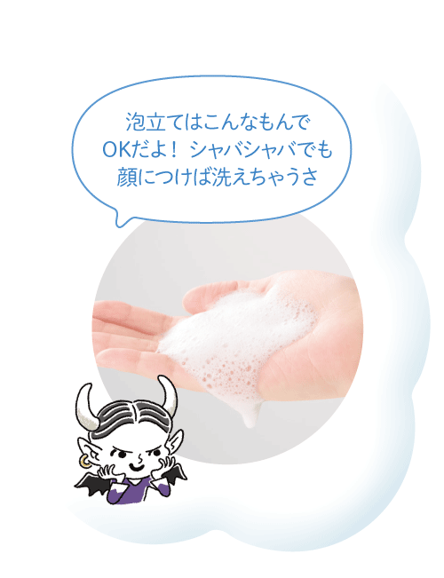 肌を強くこするとバリア機能を乱し、乾燥の原因に。肌にのせた泡を手で軽く転がして。泡に汚れが吸着されるので、ちゃんと汚れは落ちます。