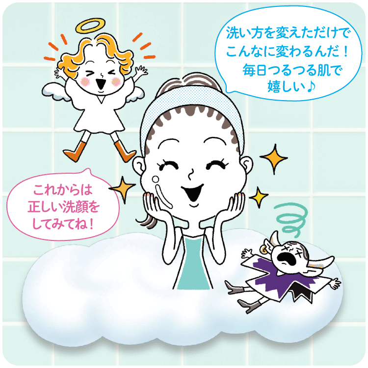 肌の乾燥を防ぎたいなら「洗うケア」も大事なのをご存じですか? 洗顔の天使と悪魔と一緒に正しい洗顔方法をマスターしましょう。