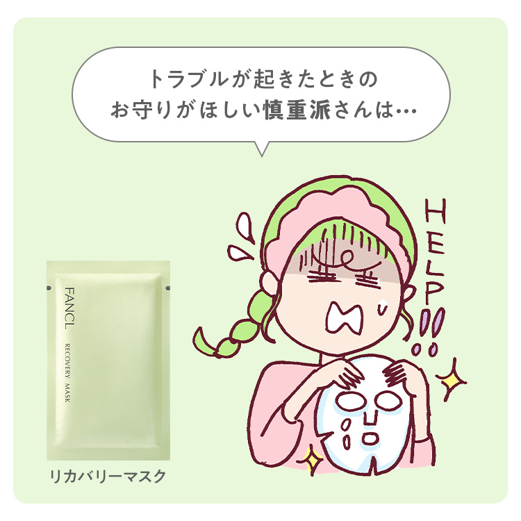敏感肌で、肌あれやニキビなどのトラブルが起きやすい方に常備していただきたいのが、薬用の「リカバリーマスク」。肌を整えるCICA*を配合。ぷるんとうるおいに満ちたなめらかな肌に整えてくれるから、ゆらぎやすい季節も頼れる逸品です!