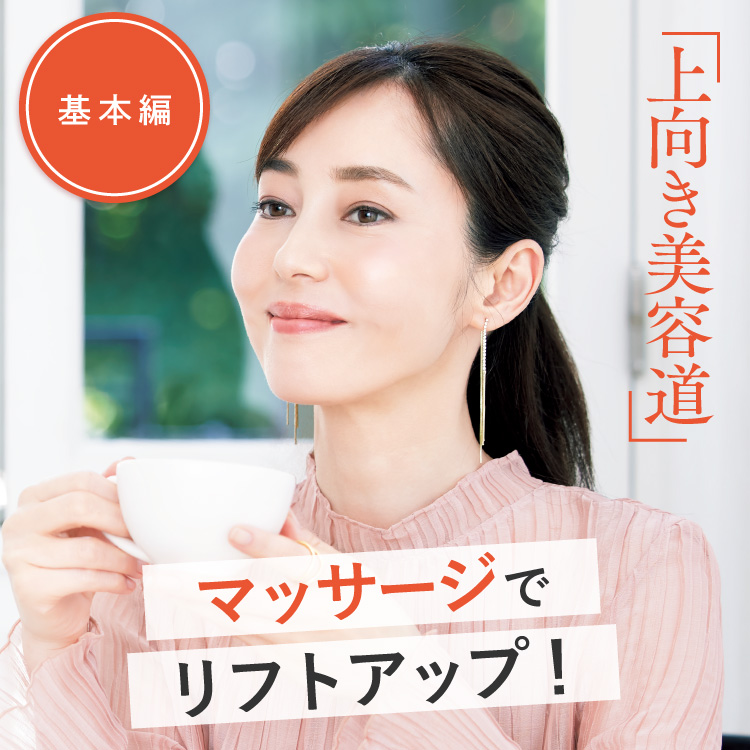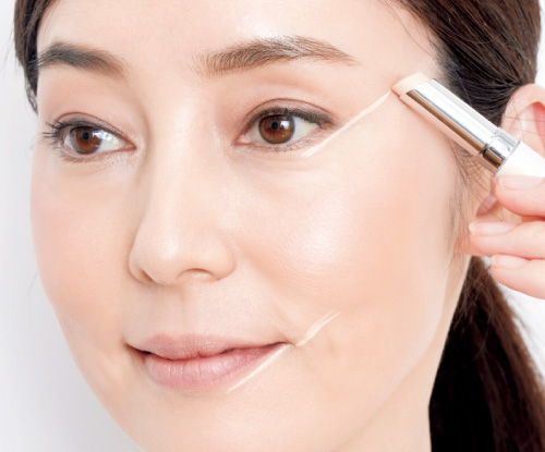 スキンケアでじっくり肌を整え、筋肉を刺激して引きしめたらチークとコンシーラーでリフトアップして見せる簡単テクニックもマスター。