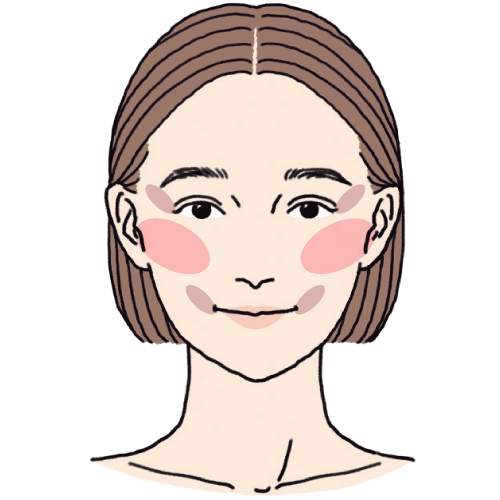 笑って高くなる頬骨の上側から頬骨に沿って引き上げ水平にぼかす。