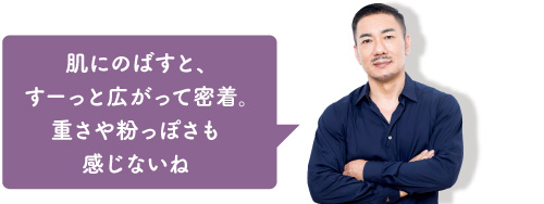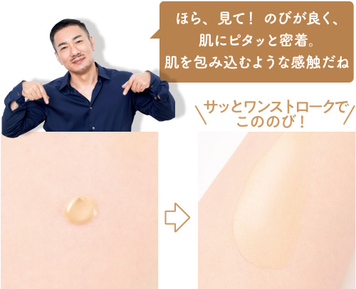 より心地よい感触に生まれ変わった新作下地。テクスチャーを腕にのばしてみると、きしむことなく、スルスルとなめらかにのびてピタッとフィットするね。粉っぽさや乾燥感もないので、1日中快適!