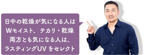 うるおいならWモイスト、サラッとならラスティングUVと使い分け