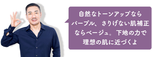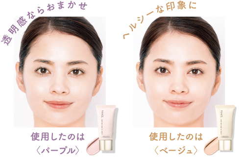 新作下地のカラーバリエーションは2色。ベージュは健康的&ナチュラルに肌補正がしたいときに、パープルは透明感を帯びた、ほんのり血色感のある肌になりたいときに。2色とも肌から浮かずなじみやすいのも魅力。