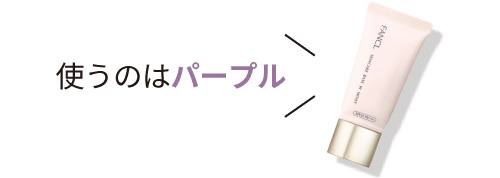 顔全体にパープルの下地を塗った後、くすみやすい頬や高く見せたいTゾーンに少量を重ねづけ。横に引っ張るように塗ると、最初に塗った下地がとれるのでスタンプを押す感覚でトントンと。