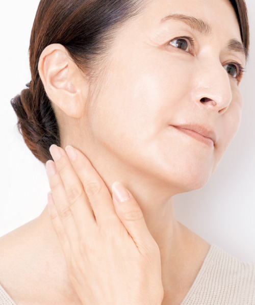 輪郭の部分を手で軽くぼかすことでファンデーションがなじみ、顔から首にかけてのつながりが良くなります。