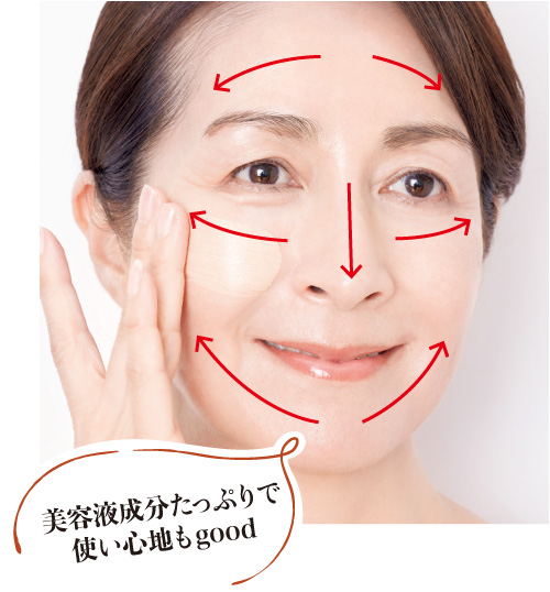 大人に最適なのは、保湿力たっぷりの美容液ファンデーション。うるおいに満たされたハリツヤ美肌になって、「もとから素肌が美しい人」に近づけます。顔の印象もイキイキ!