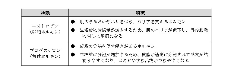 生理前はホルモンバランスの影響で皮脂分泌が増えたり、肌のバリアが低下したりと、肌が敏感で不安定な状態になります。