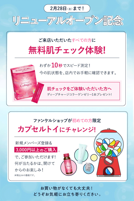 ぜひみなさま お気軽にファンケルショップにおこしください!