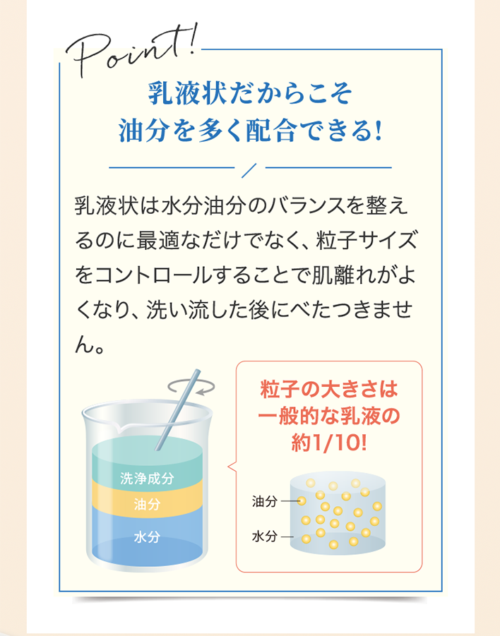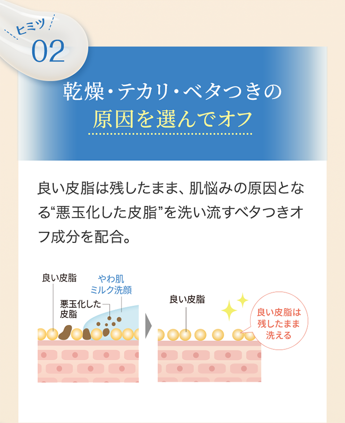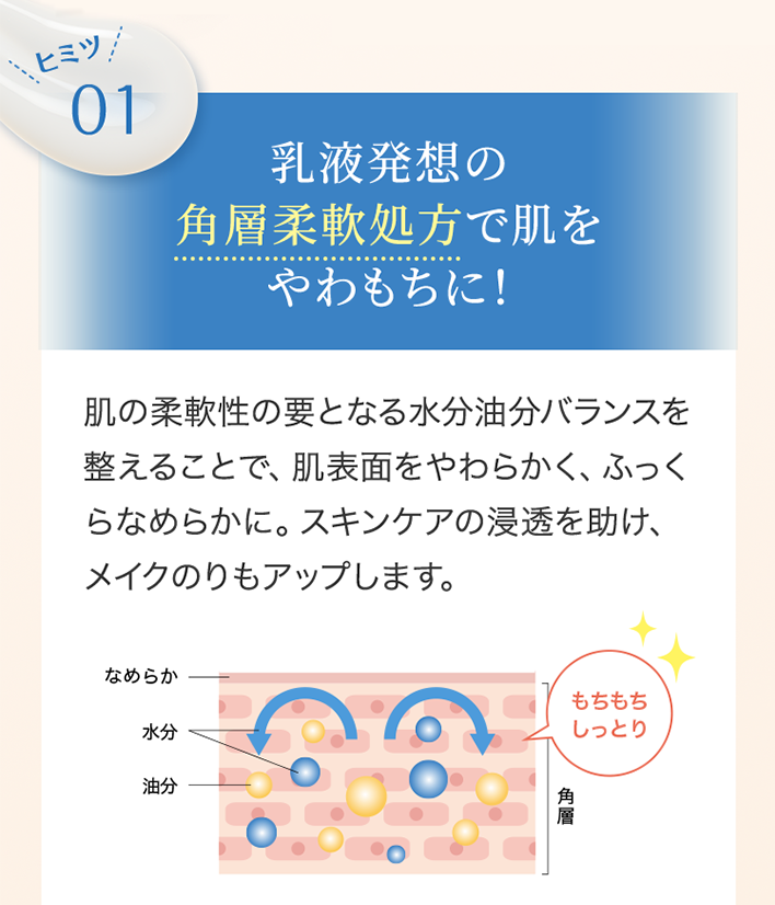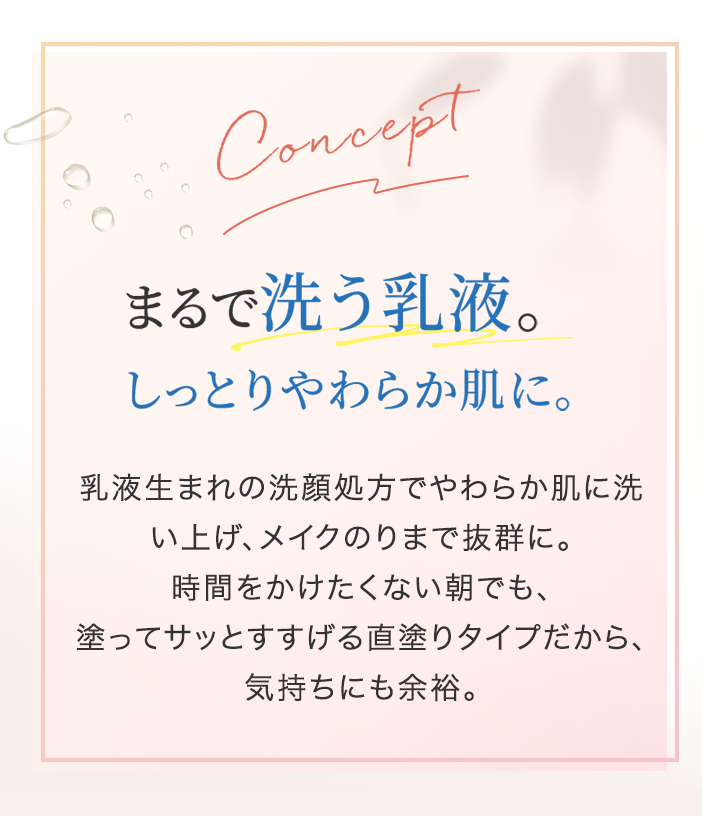 しっとりやわらか肌に洗い上げる泡立て不要の朝用ミルク状洗顔料で、メイクのりもアップ。目覚めたての肌からテカリやべたつきの原因をオフし、うるおうふっくら肌に整えます。