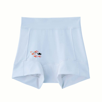 内蔵の骨盤ベルトが腰まわりをぐるりと支えます。ボクサー型の内パンツとセミワイドの外パンツで、快適なフィット感と脚のラインのカバーを両立。すっきり快適に過ごせる1枚。