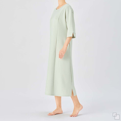 ラクに体型カバーできて、お部屋用にもご近所用にも大活躍間違いなし。きちんと見え素材&シルエットの大人かわいいワンピです。両サイドに裾スリット入りで歩きやすい。両側ポケット付き。