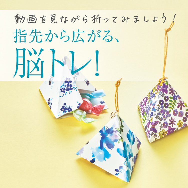 脳は何歳になっても成長できます。考えながら指先を動かす折り紙は、脳トレに最適!完成したときの達成感も脳へのうれしい刺激に。少し難しいですが、チャレンジして脳を活性化させましょう。