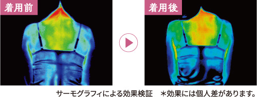 ウェアを着用して30分で、体の温度に変化が。特殊生地が全身を包み込むので、着ている間は常に体をほぐしている状態に。