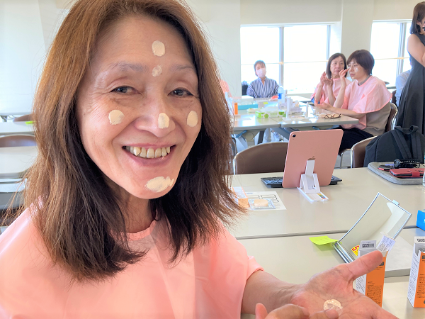 セミナーは、半顔は講師がサポートしながら、半顔はご自身のみで実習をしていだく形式にしており、ご自宅でもメイクができるようになっていただくことを目指しています。