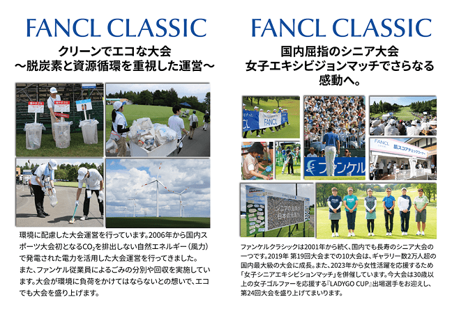 併せてファンケルクラシックでは、環境配慮にも取り組んでおり、環境にやさしいエネルギーで大会運営を行なっています。今年度の「SDGsブース」は、ファンケルのSDGsの取り組みのパネル展示に加え、ファンケルクラシックの歴史やクイズもご用意します。会場入口付近にあるブースにぜひお立ち寄りください!
