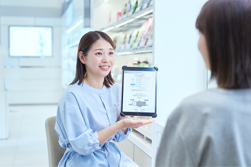 また、ファンケルの直営店舗では、美容と健康に関する知識を保有するスタッフが、お客様の声に寄り添って、美と健康のサポートを行なっています。