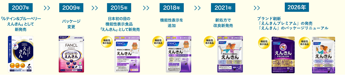 誕生した「えんきん」は、体の内側からのケアとして①手元のピント調節力②光を直接受ける目のダメージに着目した成分を配合し、ブルーベリー一色だった当時の市場を塗り替えました。そして、2015年には日本初の目の機能性表示食品となりました。