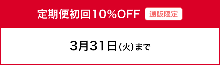 - ・定期便初回10%OFFは、こちらのページの対象商品の定期便にご登録がないお客様(過去に登録があったお客様も含む)が対象となります。現在ご登録のある方は対象外となります。また、お一人様各1点1回限りとなりますので、ご了承ください。