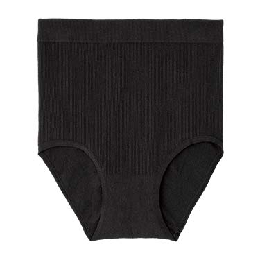 リブ編みの強弱による立体構造でおしりの丸みに快適フィット。丸みはつぶさず、下から支え、すっきりヒップに。ぬい目がないからしめ付けず快適フィット。[1枚ばきOK]