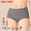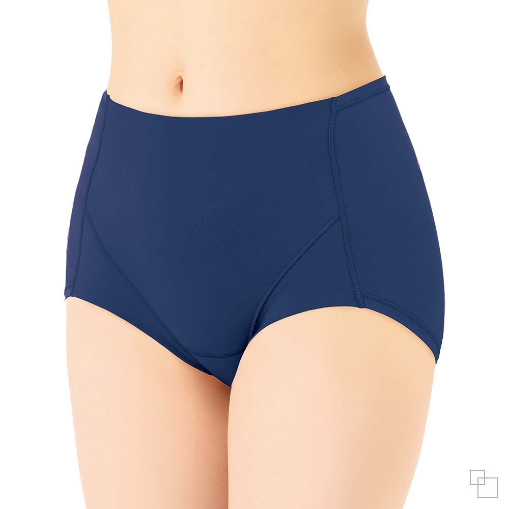 ウエスト前側と前足口は折り返し仕様。足のつけ根に沿う立体構造で締めつけを軽減。おしりの丸みに合わせた立体構造で、どんな動きにもフィットしてズレにくい。[深ばき]