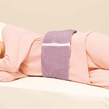 ふわふわの保温素材を腰に巻くだけ!寝具と腰のすき間を埋め、腰の負担を軽減。寝返りをスムーズに。保温素材を2種類重ね、心地よくあたたかい。