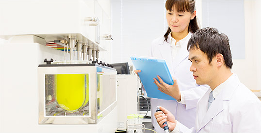 原料の受入れ検査体制、製造工程内及び品質管理部門での製造ロット毎のダブル検査体制を確立。これにより出荷可否を判断しています。