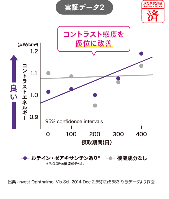 【出典元】アスタキサンチン:細川雅史.一般財団法人 食品分析開発センターホームページルテイン:J Am Diet Assoc. 1993;93(3):284-296.ゼアキサンチン:J Food Compost Anal 1999;12(3):169-196. (えんきん1日1粒当たり)
