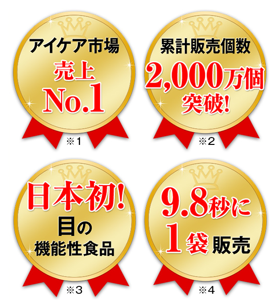 ※1 2015年〜2019年売上金額出典「:H・Bフーズマーケティング便覧2017〜2021機能性志向食品編 <アイケアカテゴリー内シリーズサプリメントメーカーシェア>(株)富士経済 ※2 旧商品2007年10月~2021年2月末の販売実績概算 ※3 えんきん(届出番号:A7)は初めて公表された目の機能性表示食品です。現行品(届出番号:E700)は、処方、届け出表示を変更したものです。 ※4 「えんきん」2007年10月~2020年4月販売実績より換算