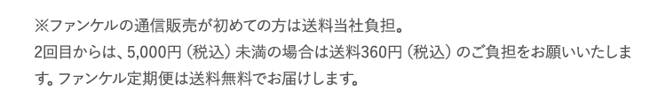 ※ファンケルの通信販売が初めての方は送料当社負担。2回目からは、5,000円(税込)未満の場合は送料360円(税込)のご負担をお願いいたします。ファンケル定期便は送料当社負担でお届けします。