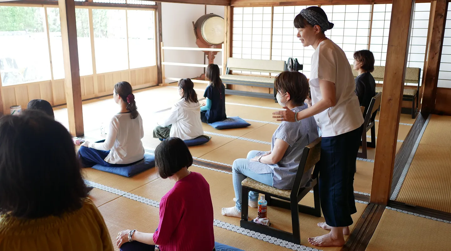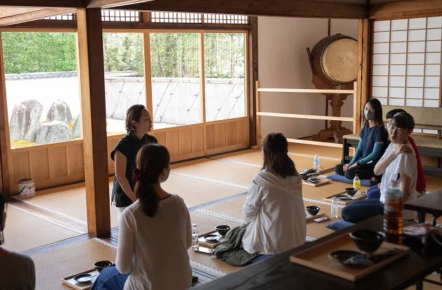 ロイヤルステージのお客様限定の特別企画、第1回目となる「特別拝観と呼吸法レッスンで心身のセルフケア」が京都の光清寺で行われました。通常非公開の寺院をロイヤルステージのお客様のためだけに開放していただき、特別な御朱印もご用意いただきました。当日は13名のお客様がご参加され、非公開寺院内の見学や、姿勢・呼吸法のレッスン、お茶菓子とお抹茶を楽しまれました。