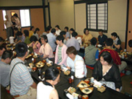 8月6日より毎週金曜日、就業後の約1時間プロのインストラクターを招いて本格的なエアロビクスを習っています。まず、ストレッチ体操に筋肉トレーニングから始まりアップテンポの音楽に合わせてのエアロビクス体操、どらえもんの曲に合わせてのダンス等、初心者でも楽しめるように工夫されています。最後は、空手の型で締めて終わります。スタジオがあるわけでもなく2階の会議室のテーブルを片づけただけの即席の会場なので、1階スマイルの事務所のスタッフは毎週空から降ってくる元気の良い足音に、「床が抜けなければ良いがなあ」と天井を見上げています。