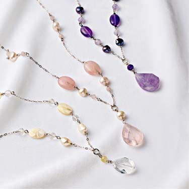 天然石の魅力が引き立つ日本製の3wayアクセサリー。2つを連結してロングネックレスとして。ネックレスとブレスレットを別々にアレンジを楽しめます。マグネット式なので、簡単・安心に自由なおしゃれが楽しめます。